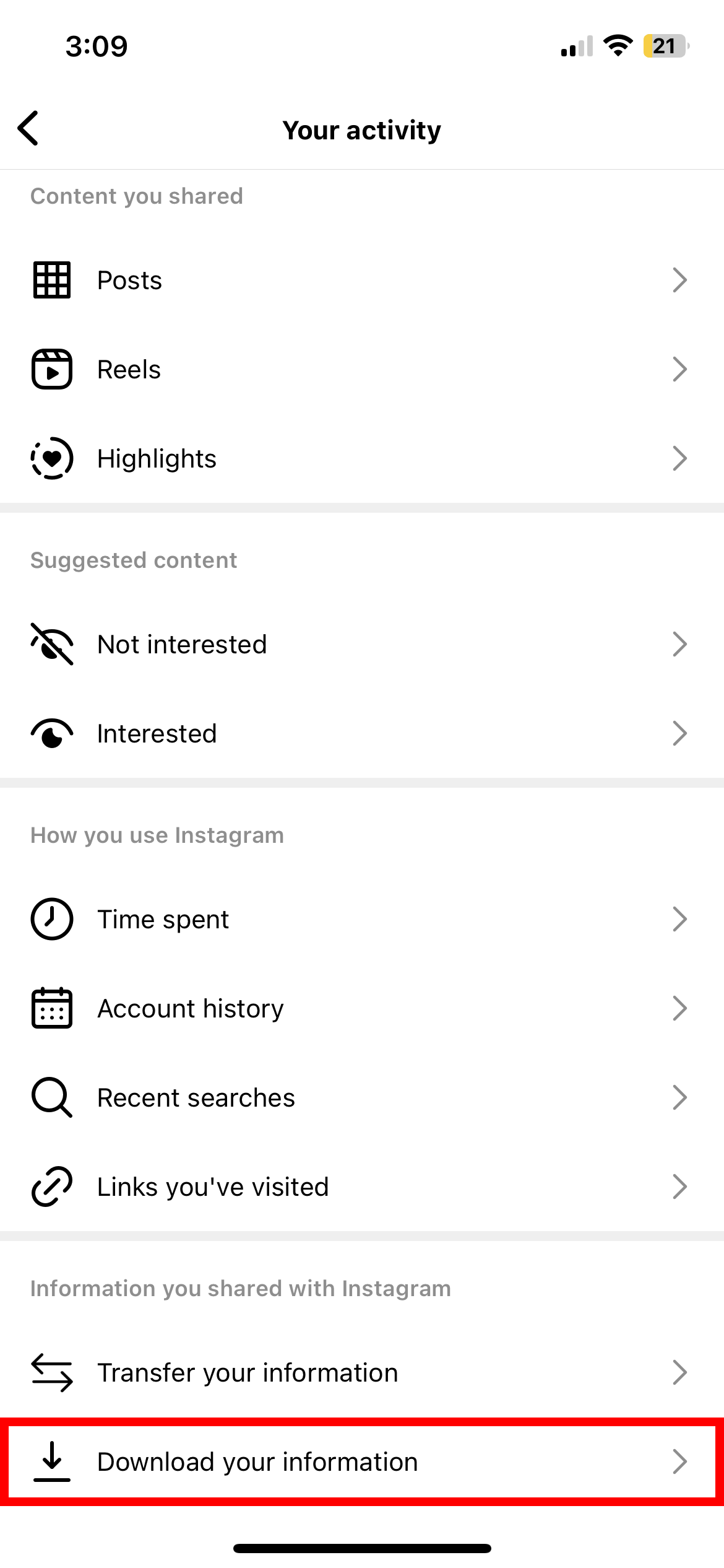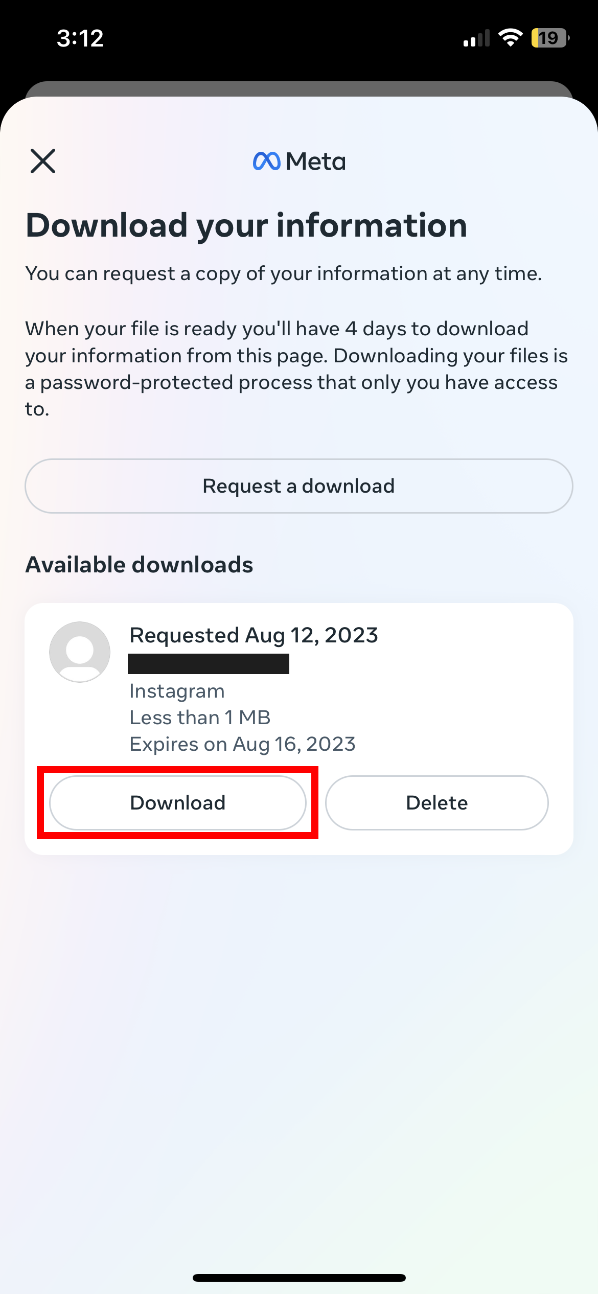 - You'll receive an email titled Your Instagram Data with a link to your data (this might take a day, but usually is faster). Tap Download data and follow the instructions to finish downloading your information. You'll need to navigate back to the Download your information page once its ready