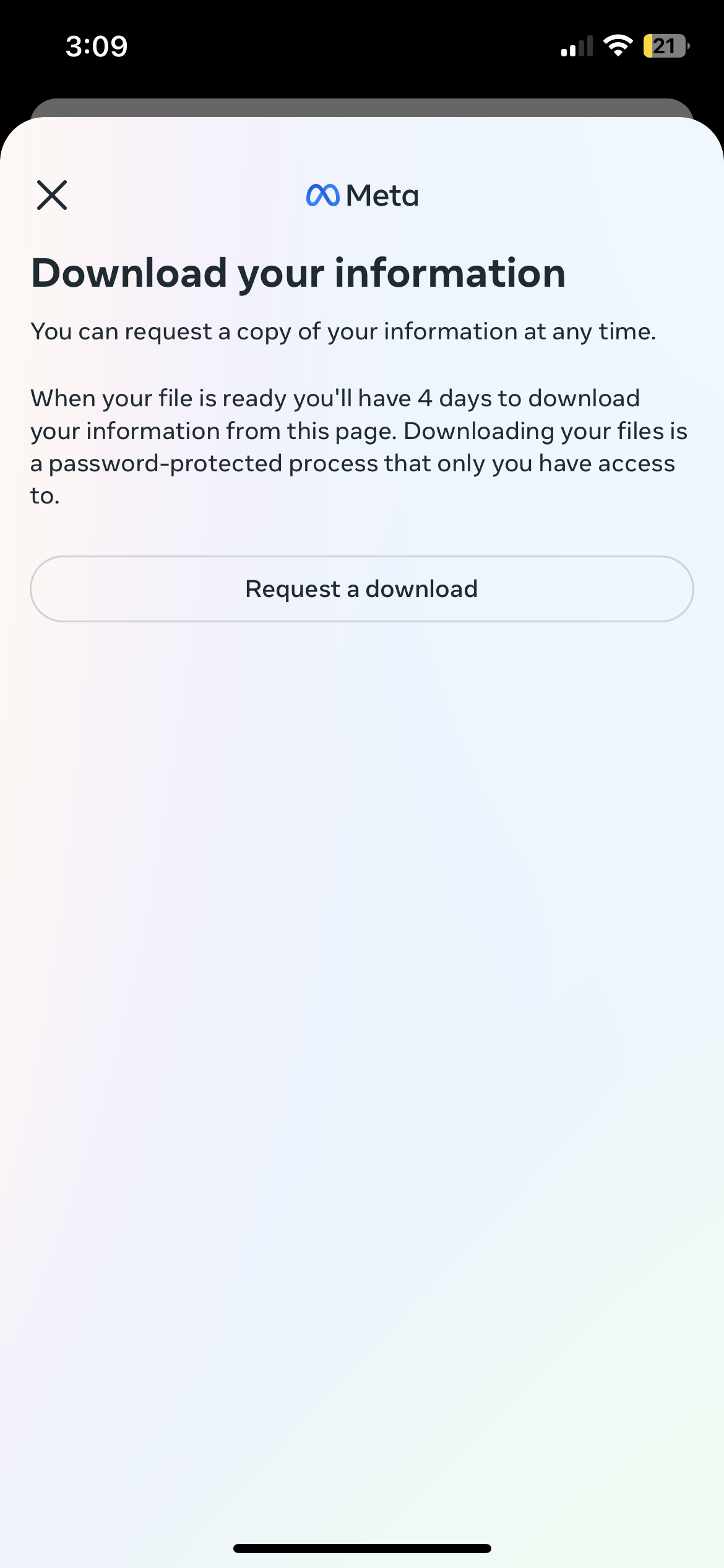 - Enter the email address where you'd like to receive a link to your data (if you haven't done so before), then tap Request a download.